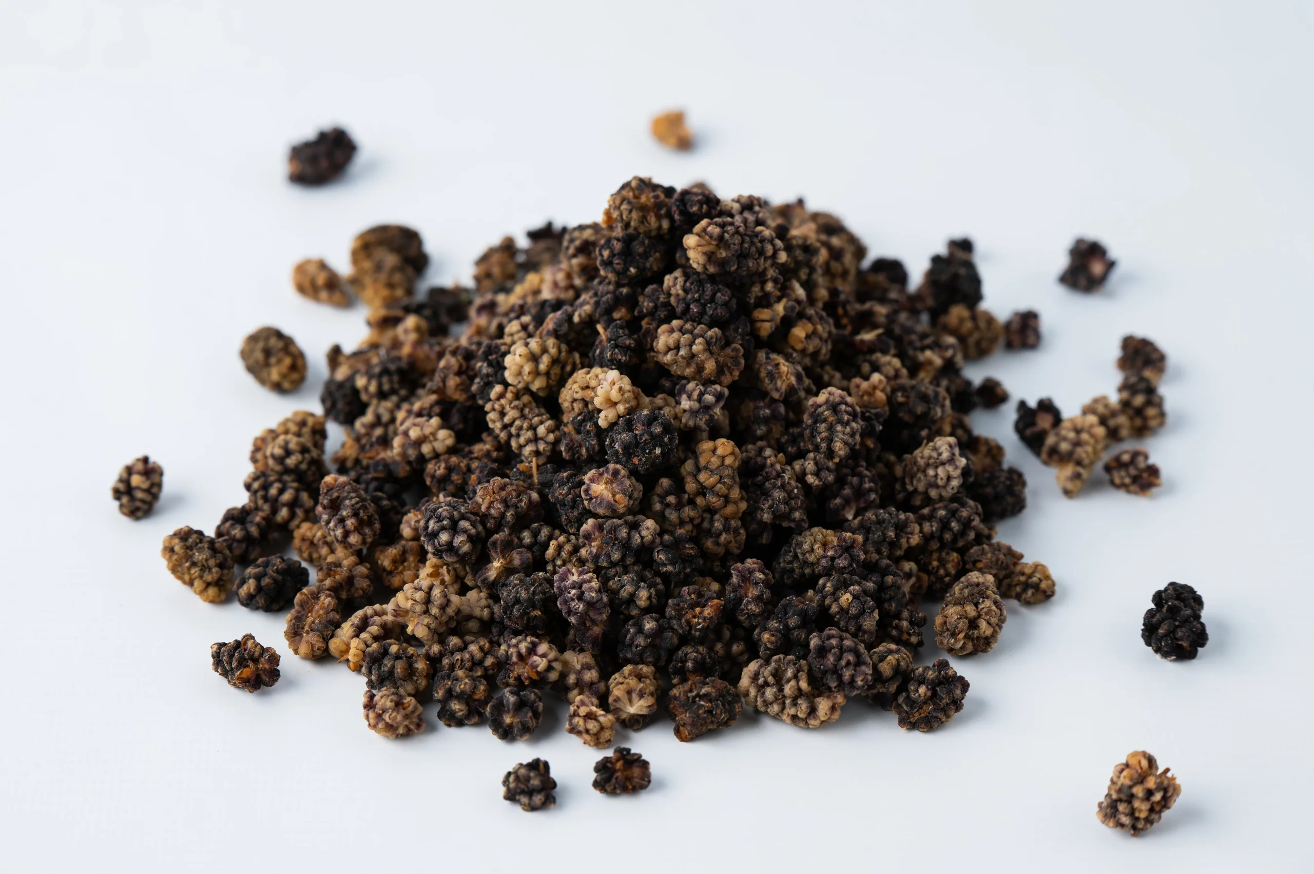 - Naturally dried whole black mulberries — deep, rich sweetness